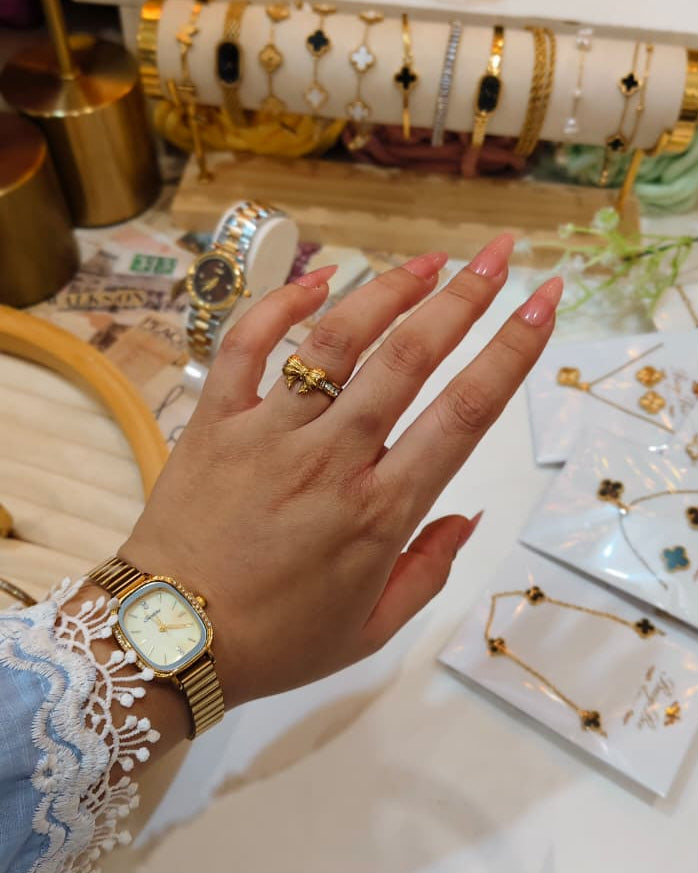 True elegance lies in the details that remain unspoken. The Infinite Knot is a poetic tribute to the ties that define us, reimagined as a delicate, sculptural masterpiece. At its heart lies a meticulously crafted golden bow—a symbol of a promise kept, a memory cherished, or a love that knows no end.